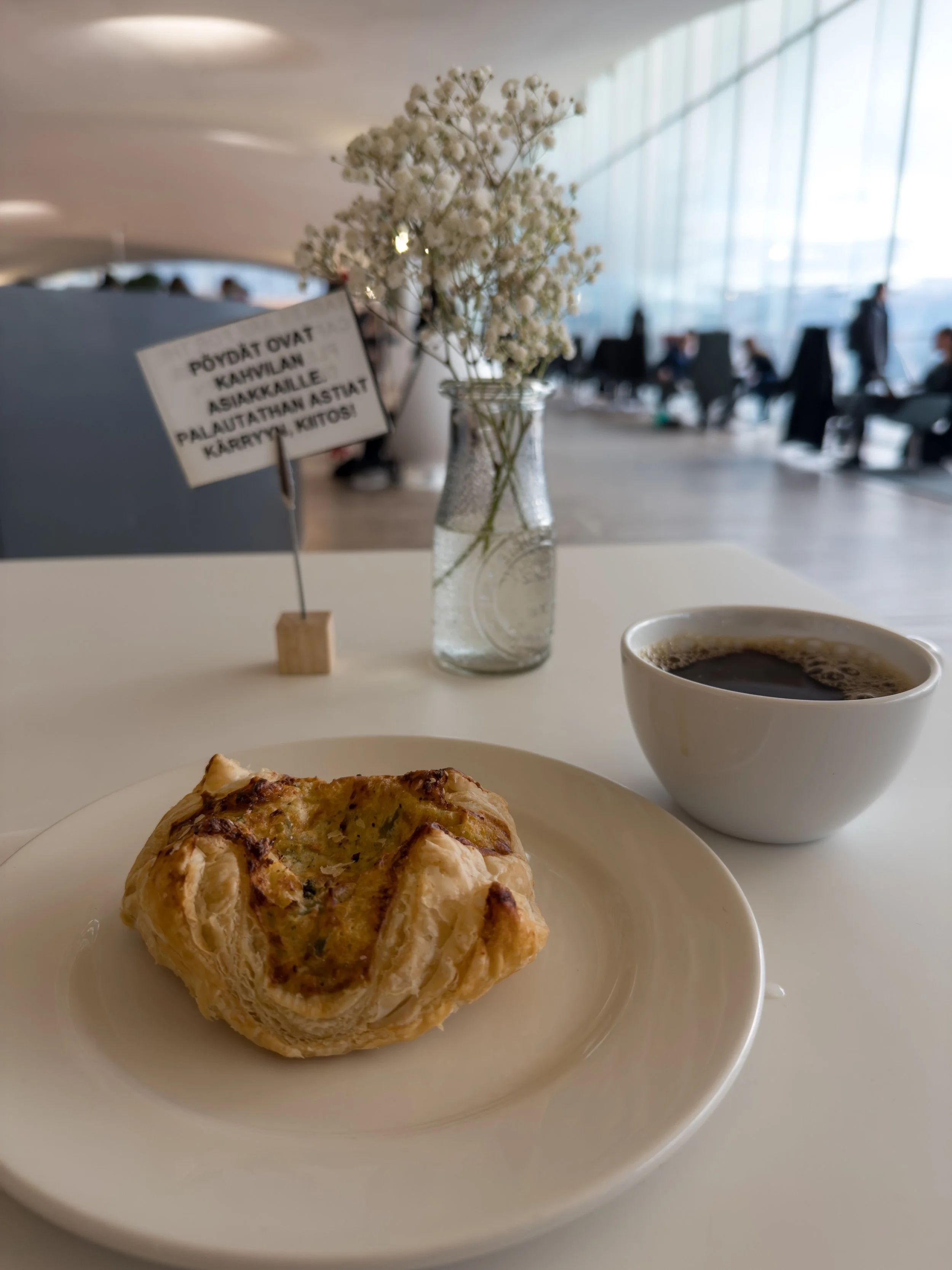 They have a cafe on the floor, so I stopped for a snack of a broccoli pastry thing and a coffee. I am always an iced coffee person, but in Finland in winter… it was all hot drinks this trip!
