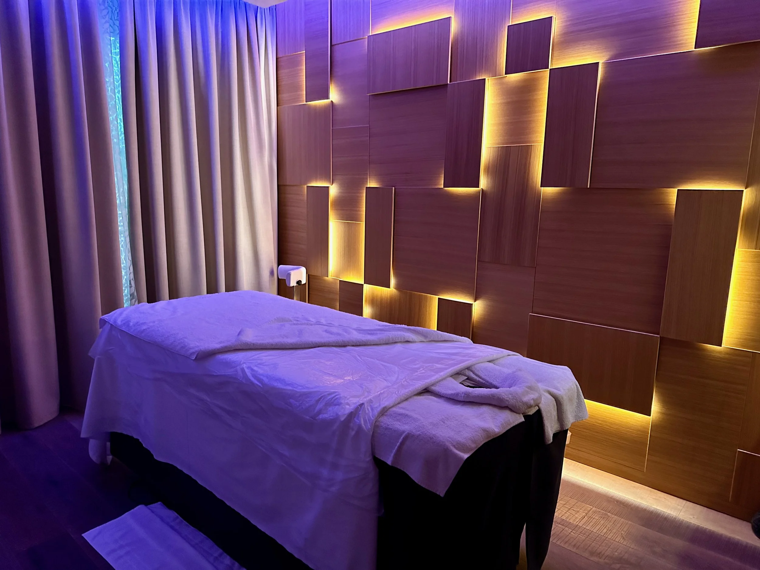 My therapist Valeria was lovely, and gave me the choice of some aromatherapy – lavender, lemon, orange, or eucalyptus (I went with a refreshing orange). The whole treatment was fantastic, and afterward I spent another half hour or so in their infrared relaxation loungers, a tranquil, dimly lit room with a TV that looped different peaceful nature scenes with pleasant background sound tones.